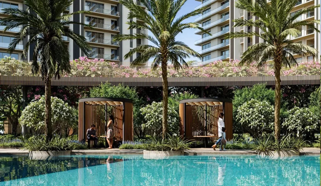 Resort-style living with 6 ft running balconies, gazebos, and cabanas.